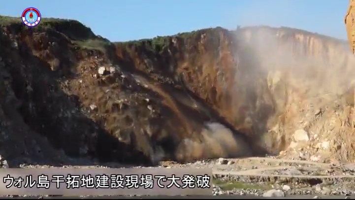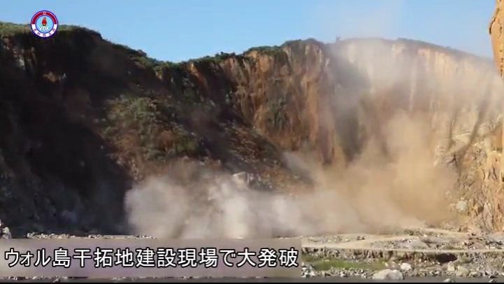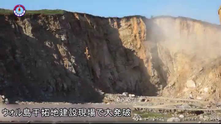 平安北道干拓地建設総合企業所の労働者がウォル島干拓地建設現場で大発破を成功裏に行いました。