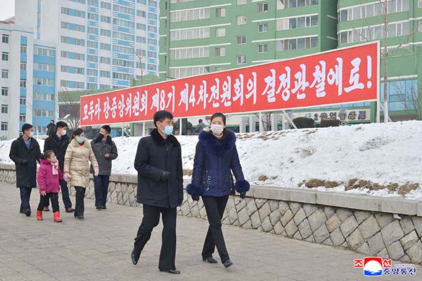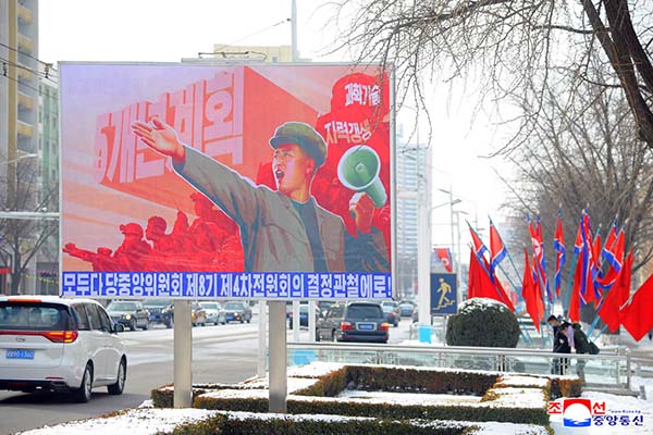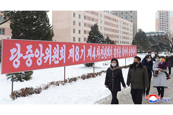 ピョンヤンの街々と各道・市・郡・里所在地、作業現場などに朝鮮労働党中央委員会第8期第4回総会の決定実行へと人民を呼び起こす直観宣伝物が集中的に掲示されました。