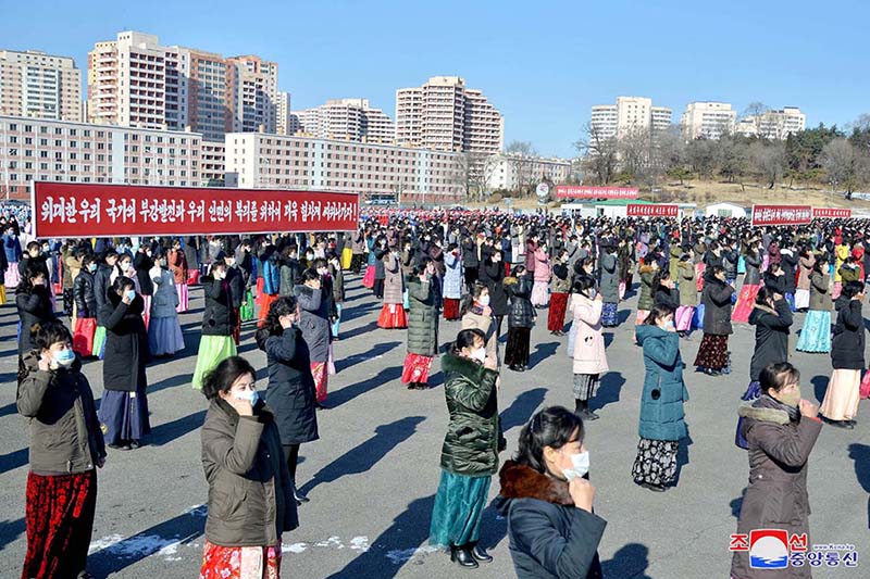 朝鮮労働党中央委員会第8期第4回総会の決定を徹底的に実行するための女性同盟の活動家と同盟員の決起大会が、13日、ピョンヤンの凱旋門広場で行われました。