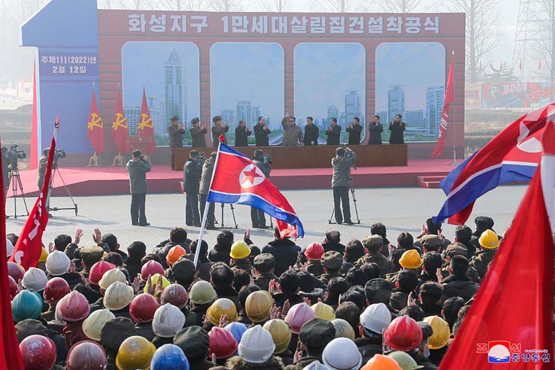 金正恩総書記は演説で、こんにち、新たな勇気と自信に満ちて首都にまた一つの変遷の時代を象徴する人民のニュータウンを建てるための起工式を行う喜びを表し、党中央委員会第8期第4回総会の決定を実行するためファソン地区の1万世帯の住宅建設の盛大な起工で、厳かな2022年度の闘いの序幕を開いている首都の建設者と人民軍軍人を党中央委員会と共和国政府を代表して熱く祝いました。