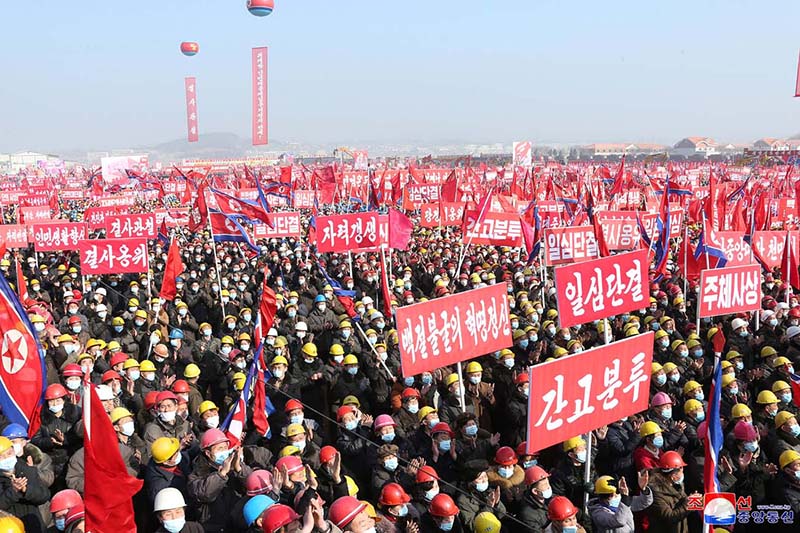金正恩総書記は党中央の意志で胸を燃やし、偉大な朝鮮労働党の戦闘的威力と社会主義朝鮮の革命的気概を誇り示す大建設に今一度総決起した頼もしい軍民建設者を熱く励ましました。