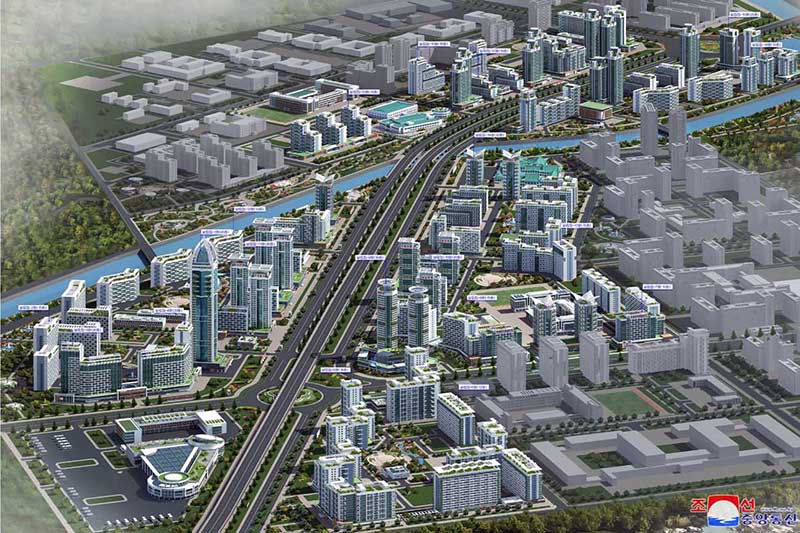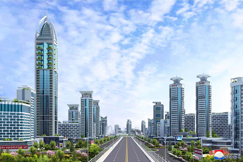 金正恩総書記は、昨年不屈の闘志と粘り強い努力によってピョンヤンの東の関門であるソンシン、ソンファ地区に1万世帯に達する立派な街を建てて、第8回党大会の決定実行の2度目の年に計画通りにファソン地区の住宅建設を推進する確実な成果と保証をもたらした軍民建設者の偉勲を高く評価しました。