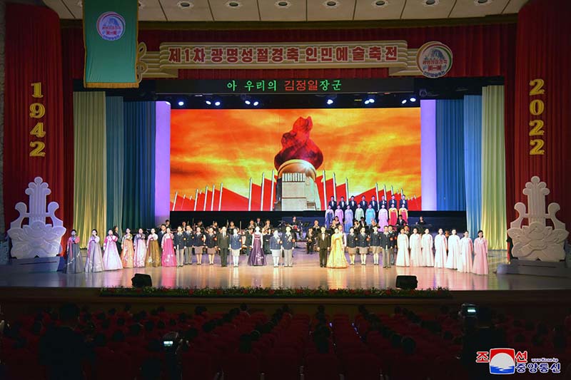 民族一番の祝日の2月16日を迎え、第1回光明星節記念人民芸術際の初演が12日、ピョンヤンで行われました。