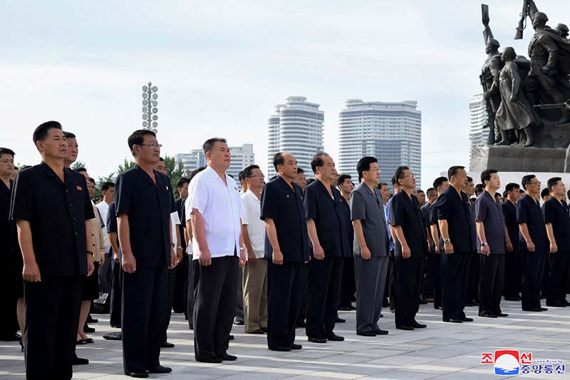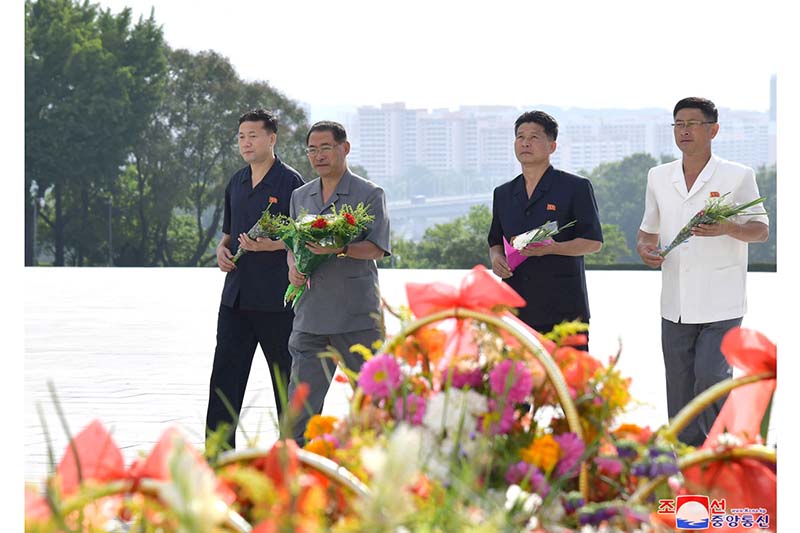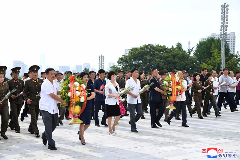 党と政権、武力機関と大衆団体、各省、中央機関、朝鮮人民軍と社会安全軍の各部隊、ピョンヤン市内の各機関、工場、企業などの名義の花かごが捧げられました。