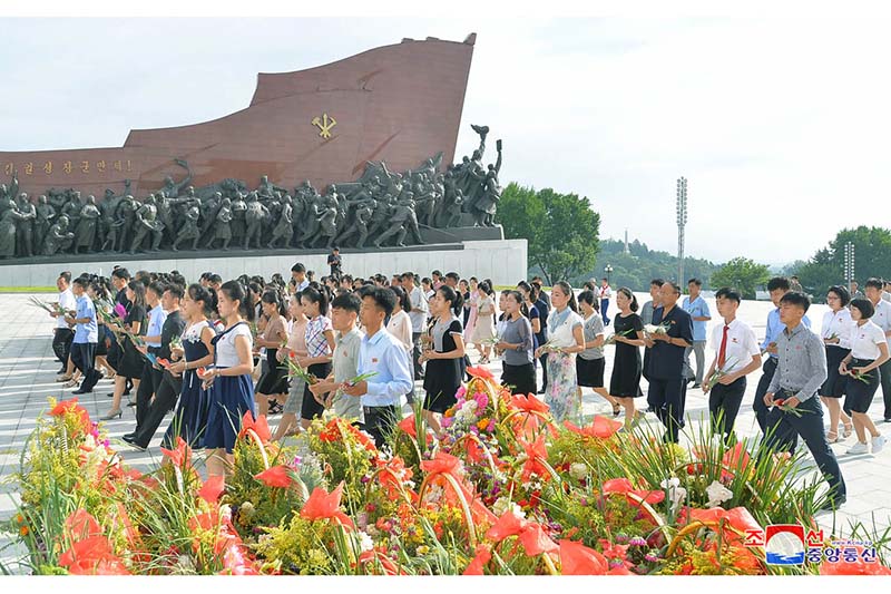 一方、ピョンヤンの各所にある主席と国防委員長の銅像と太陽のように明るく微笑む主席と国防委員長を描いたモザイク画に朝鮮人民軍と社会安全軍の各部隊、機関、企業などの名義で献花されました。