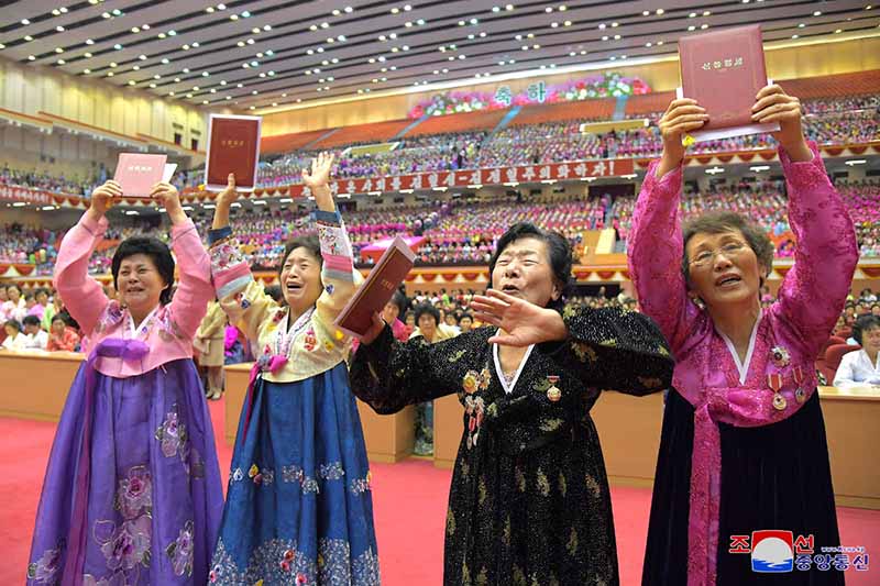 みなが健康な身で偉大な金正恩時代を輝かせる忠誠と愛国の道で母親の誉れ高く崇高な本分を全うすべきだ、と述べました。