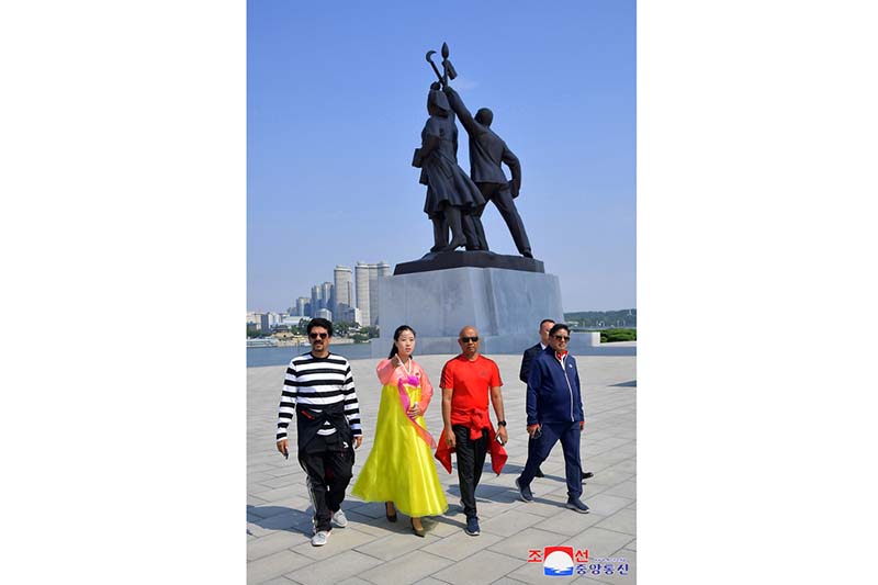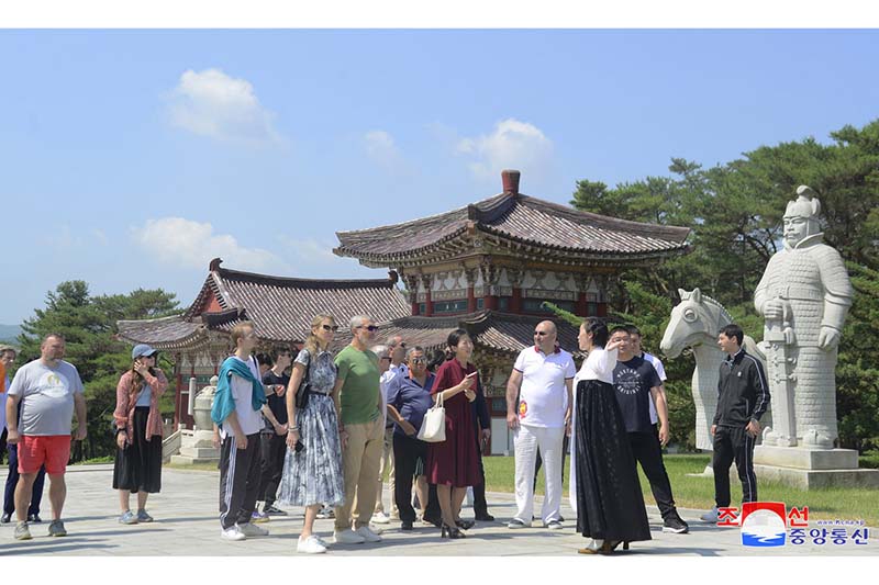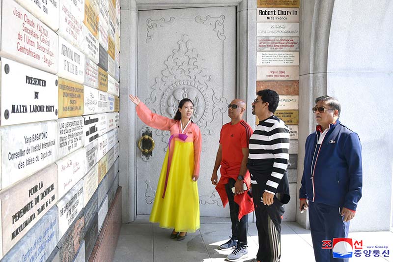 一行はまた、チュチェ思想塔と凱旋門、国家贈り物保存館、カンドン総合温室農場などを見学しました。