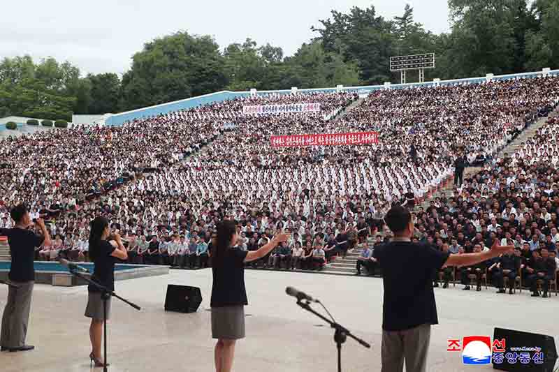 集会では、祖国解放戦争の時、アメリカの殺人鬼と階級の敵が朝鮮人民に働いた野蛮行為を断罪する階級的教育がテーマの芸能煽動がありました。