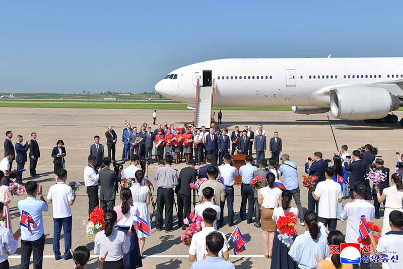 朝鮮労働党中央委員会のキム・ジョンスン部長率いる朝鮮女性活動家代表団がロシアを訪問して28日、空路帰国しました。