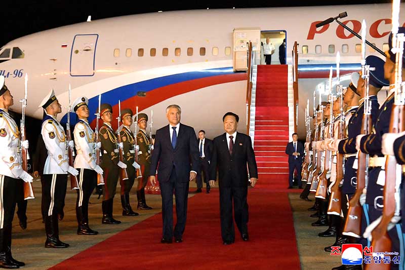朝鮮民主主義人民共和国最高人民会議の招きにより、朝鮮の解放80周年に際して朝鮮を祝賀訪問するビャチェスラフ・ウォロジン議長率いるロシア連邦国家会議代表団が14日、ピョンヤン入りしました。