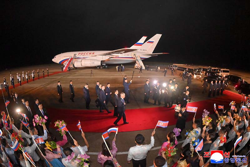 最高人民会議常任委員会のカン・ユンソク副委員長と関係者、ロシア連邦のアレクサンドル・マツェゴラ駐朝特命全権大使と大使館員が代表団を出迎えました。