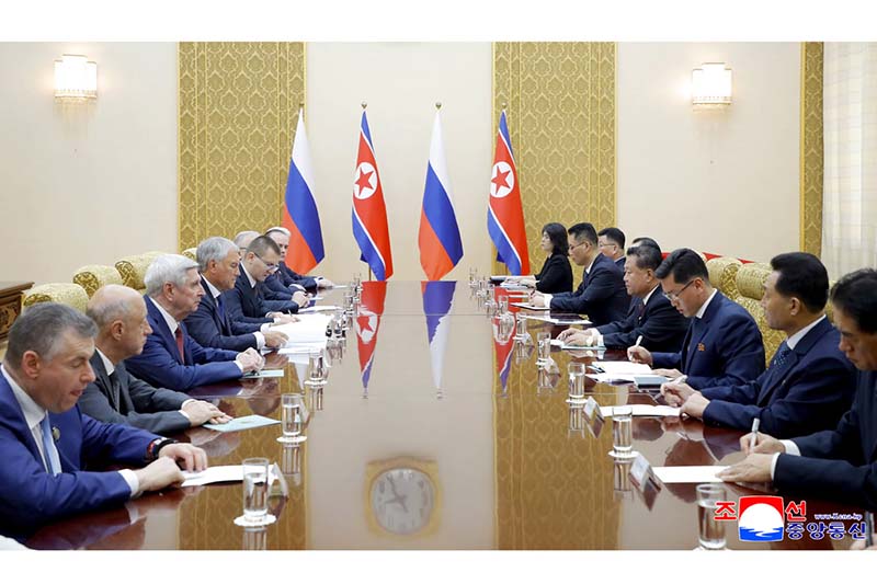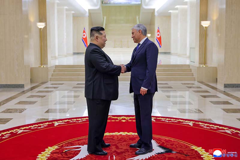 金正恩総書記はウォロジン同志とロシア連邦国家会議代表団の平壌訪問を熱烈に歓迎し、「この度の訪問は祖国解放80周年の意義を増し、新たな高い段階に上がった朝ロ関係の発展をもっと促し、両国人民の間の親密感と兄弟の感情を一層厚くする契機になるだろう」と述べました。