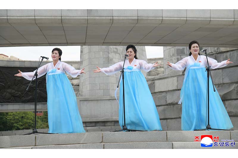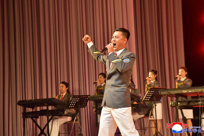 3日、ピョンヤンの青年中央会館で朝鮮労働党創立80周年記念青年中央芸能宣伝隊の公演「偉大な党に捧げる青年前衛の歌」が行われました。