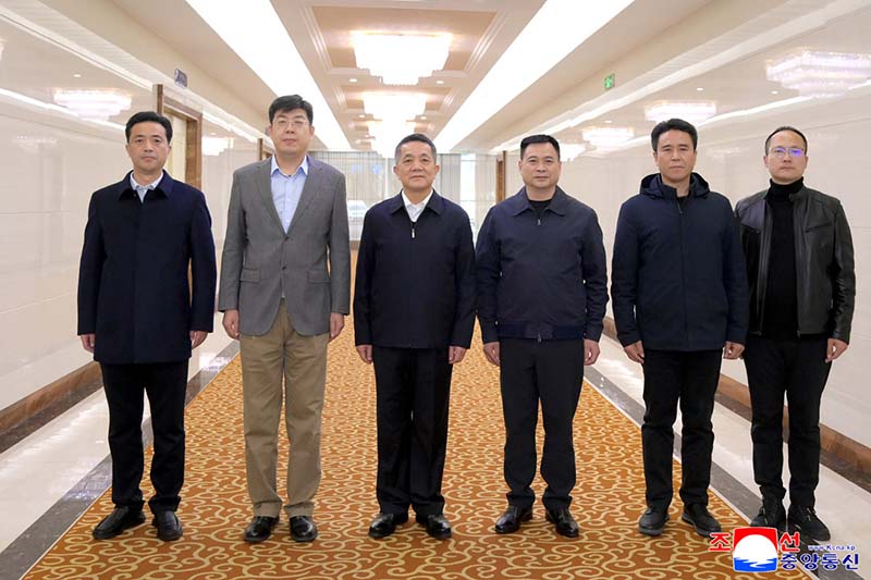朝鮮人民軍将校と駐朝中華人民共和国特命全権大使、大使館付き武官部のメンバーがピョンヤン国際空港に代表団を出迎えました。