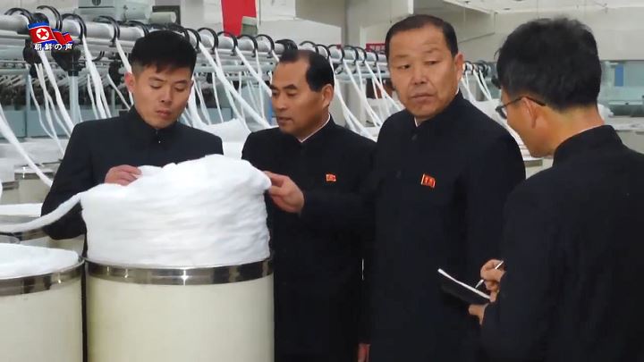 沙里院紡織工場では機械の配置に合わせて効果的な巡回方法と能率的な糸の繋ぎ方等を取り入れ、大衆運動を活発に展開して集団的な飛躍を遂げています。