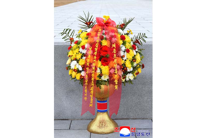 マンスデの丘の偉大な金日成主席と偉大な金正日国防委員長の銅像に在中国朝鮮人総連合会結成35周年に際して、在中国朝鮮人総連合会から花かごが送られました。