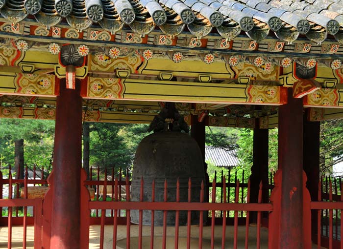 わが祖先の英知と才能を見せる歴史遺物の中には楡岾寺の鐘もある。楡岾寺の鐘は去る祖国解放戦争(朝鮮戦争)の時期、アメリカ帝国主義の野蛮な爆撃によって焼き払われた金剛山楡岾寺の跡に残されていたものが妙香山遺跡区域に移され、国宝として保存、管理されている。1469年に製造され、1729年に元のものより大きく造り直したこの鐘は高さ2.1メートル、重さは7.2トンである。鐘の鉤は双龍(二頭の竜が絡み合っている)で、上部に覆蓮模様帯と梵字模様をめぐらし、鐘の体形には菩薩像、鐘銘、寶相華模様帯を刻んだ。同鐘は朝鮮鐘の特徴を立派にそなえたことで形が美しく、その音も荘重である。