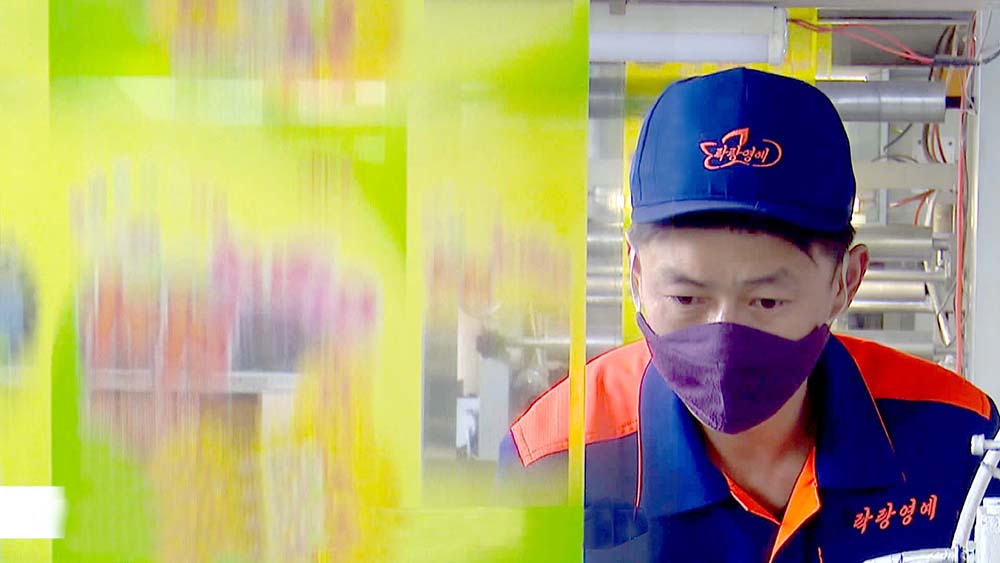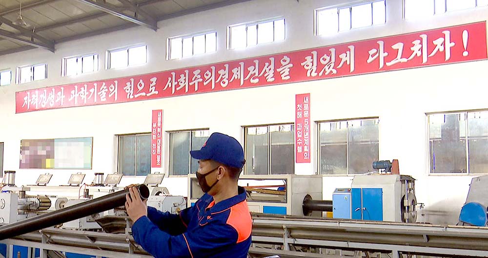 「リサイクル化が生産でウエートを占めている状況下で、リサイクル化の生産工程の補強と完備に力を入れましたが、近頃も原料の加工機械、パイプの成形機械などの設備を自力で製作して、生産正常化に寄与しました」