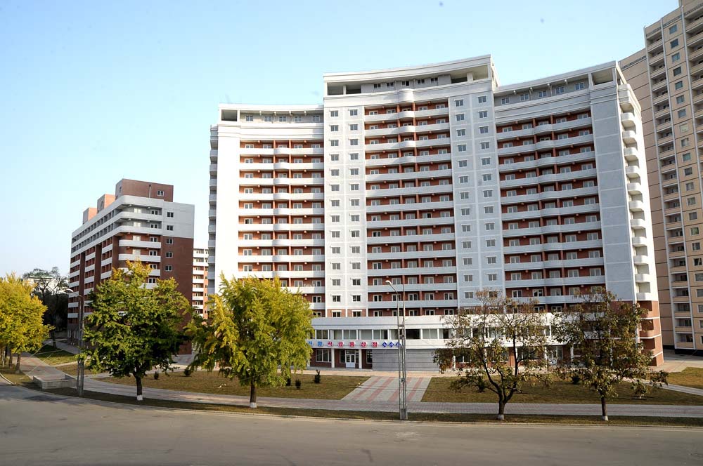 チュチェ98(2009)年10月20日、総書記がマンスデ通りに新築された住宅を見ました。総書記は住宅の内部を具体的に見て、暖房条件や上下水道の施設、さらにはドアの取っ手に至るまで細かく気を配りました。そして、市民にいっそう充実した住宅を与えるようになった、と言って大いに喜びました。