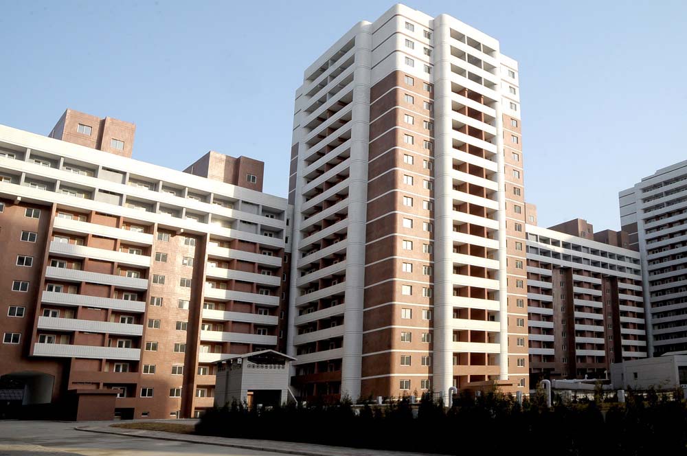 金正日総書記が格別関心を持ったマンスデ通りはチュチェ98(2009)年に完工しました。総書記はマンスデ通りの住宅建設を発案し、設計から施工に至るまで建設の詳しい方向付けをし、困っていることも優先的に解決してやりました。こうして一年余りの間に地帯の特性に合うよう屏風式、階段式などさまざまな形の多層、高層住宅が林立するニュータウンが生まれました。