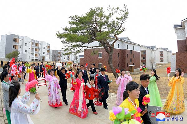 「実を言いますと、困難がいつにも増して酷い状況下で、国力強化の大業と各分野の果敢な変革を推し進める緊張した中、一つや二つの地域でなく全国範囲で同時に住宅の建設を行うというのはそれこそ、大勇断だと言わざるを得ません。分けても国家の負担によって建設され、勤労者に無料で宛がわれるのでこれは事実上、国家の莫大な経済的損失を前提にしています。しかし人民への滅私奉仕を存在方式としている朝鮮労働党は巨額の資金も惜しみなく投じて、ピョンヤンと地方に理想の通り、理想の村を建設し、人民に幸せな生活の場を与えています」