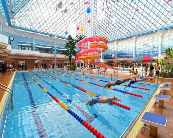 何かを1つ建設しても、まず人民の便宜を思う金正恩委員長の温かく細やかな指導によって、ピョンヤンの風光明媚なテドン川*2の岸辺に大規模な総合的遊泳場が建てられ、人民の生活に潤いを増しています。