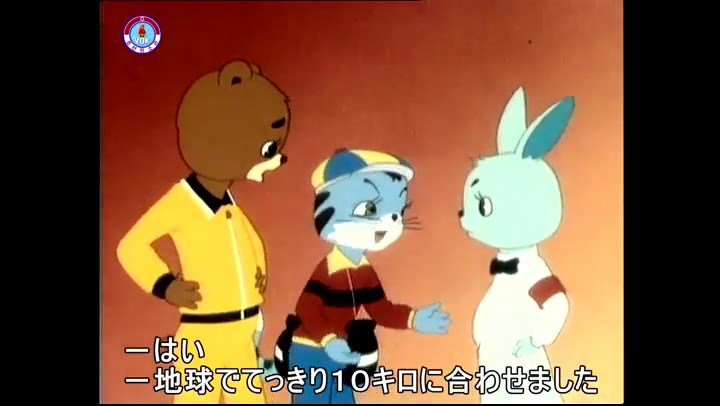 ※カボチャを収穫しているブタさん達、そこにネコ、クマ、タヌキが飛び込んで来る。重量計に飛び込む3匹。