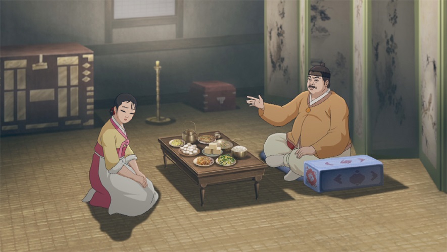 地主はポムスンが自分の息子と結婚すれば親の借金も免除され、生活もよくなると騙します。そしてポムスンがこしらえた食事をたいらげたあと、善意を装ってポムスンに親族のように接すると言います。