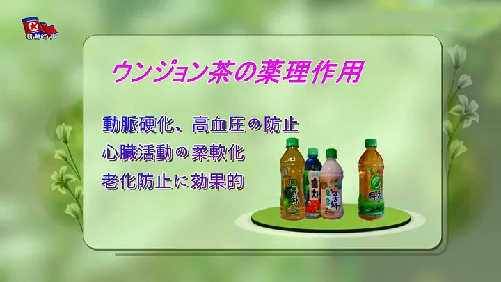 偉大な金正日国防委員長は主席の恩情が末長く伝えられるよう『恩情(ウンジョン)茶』と名付けました。康翎地方では茶の木の栽培面積が年次別に増えて数百ヘクタールに達し茶の産量も増え続けています。