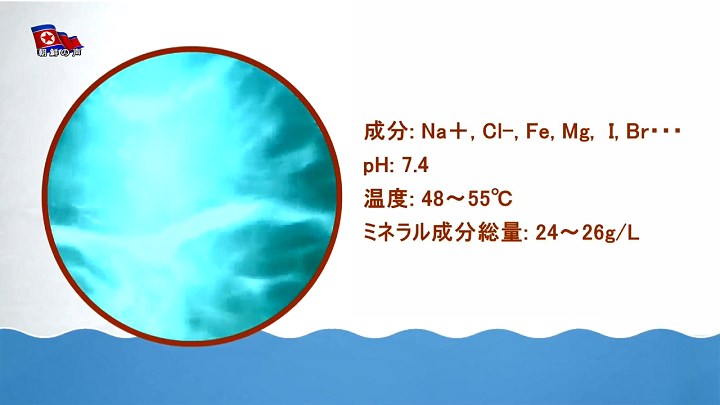 主に平安北道*1と平安南道*2、黄海南道*3と江原道*4、咸鏡北道*5に多く分布していて水温は35乃至100度で無色です。