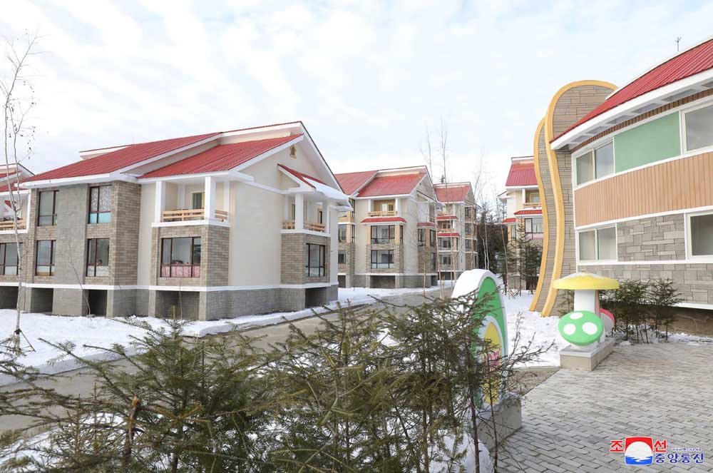 晩年にもサムジヨンの人たちの裕福な生活のため現地指導を続けた国防委員長。その崇高な願いを肝に銘じて、金正恩総書記はサムジヨン市をさらに立派なものにつくりました。2年前には所在地地区の完工で国中を喜ばせ、今年は10余りの洞と里で新居入りの嬉しい便りが伝えられました。