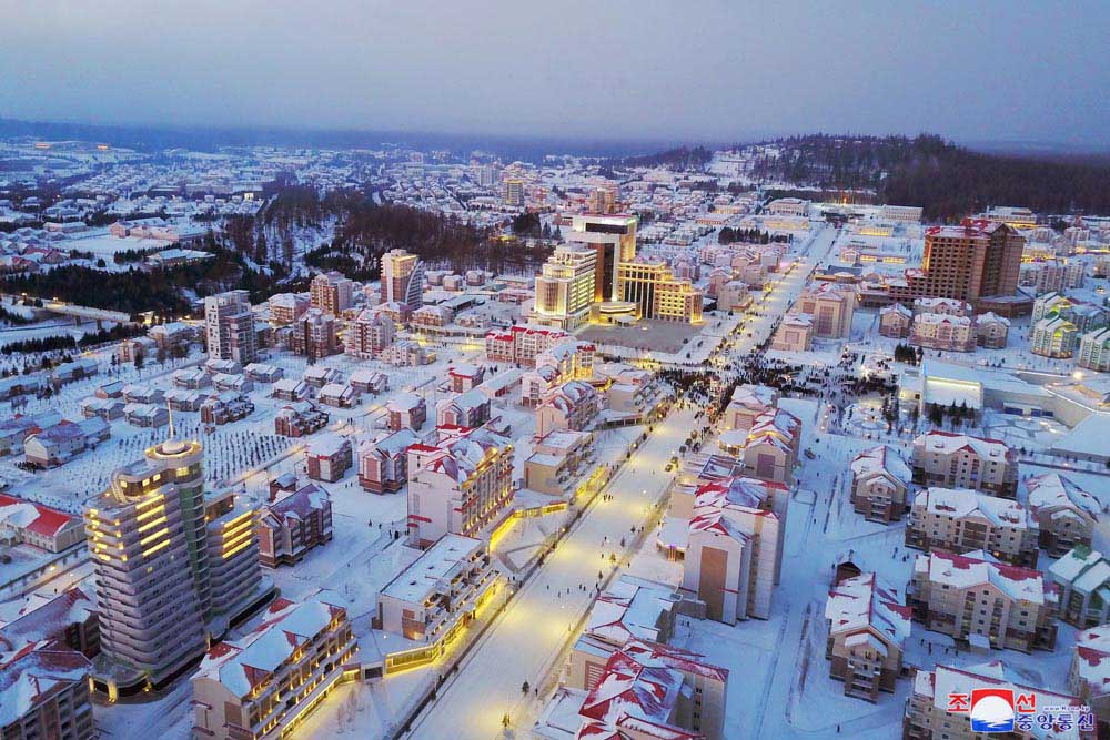 サムジヨン市*1は朝鮮北部のリャンガン道*2に位置した山間部の市です。山間部の文化都市の標準、理想的なモデルの地方都市です。この11月、敬愛する金正恩総書記はサムジヨン市を現地指導し、文化的な山間部の都市のモデルにつくられたことを高く評価しました。