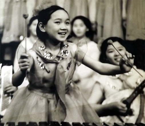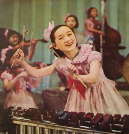 中学校の時、キムさんはピョンヤン学生少年宮殿のシロホン・クラブに通いました。毎日、放課後は、宮殿で稽古しました。チュチェ63(1974)年12月のある日、主席の臨席の下に行われた公演で、軽音楽「元帥が送った新しい制服」に出演しました。
