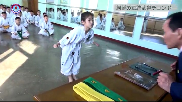 プロのテコンドー選手顔負けのこの人は校長のキム・ソンチョルさんです。驚いた事にキムさんは4段*1保持者です。