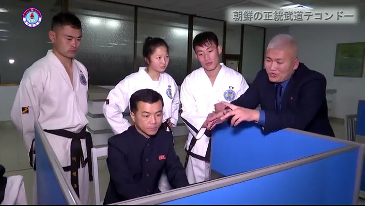 この人達はテコンドー教育プログラム『朝鮮のテコンドー Ver.1.0』の開発者です。この教育プログラムはテコンドーファンがテコンドーの歴史とその正しい知識、テコンドーの基礎動作を習うのに大いに役立っています。