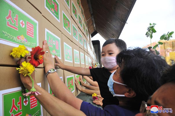 被害復旧のため人民軍軍人が緊急展開し、党中央委員会の各部署と本部メンバーの家族が真心こもる支援物資を送りました。布団と毛布、台所用品と季節別の服などが個別所帯にもれなく届きました。