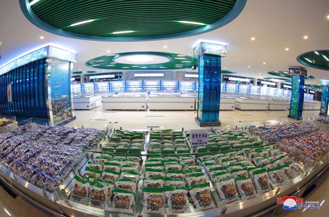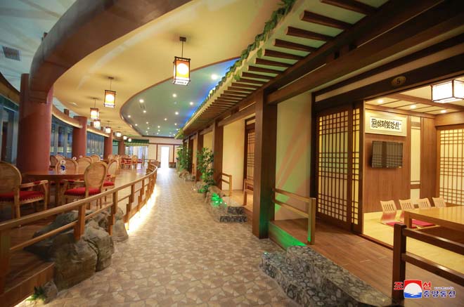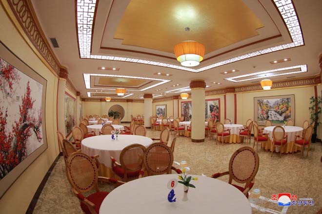 ピョンヤン・テドンガン水産物食堂は常に来客で賑わっています。
