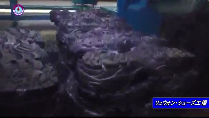 運動靴の生産が専門のこの工場では条件がどう変わろうと生産が中断する事無く、むしろ産量が増えています。その秘訣はリサイクル化にあります。形の様々なこの靴底は全部再生原料で作られました。