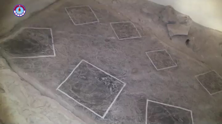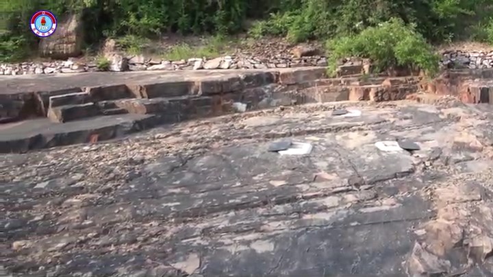 化石が現れた岩は長さ100メートル、幅15メートル程度であり、約20度の傾斜を成しています。この岩の上に2本の恐竜の足跡が顕著に現れていますが、1本には14個、他の1本には16個の足跡が残っています。