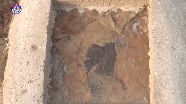 恐竜の足跡の化石の辺りで色々な植物化石が発見されました。
