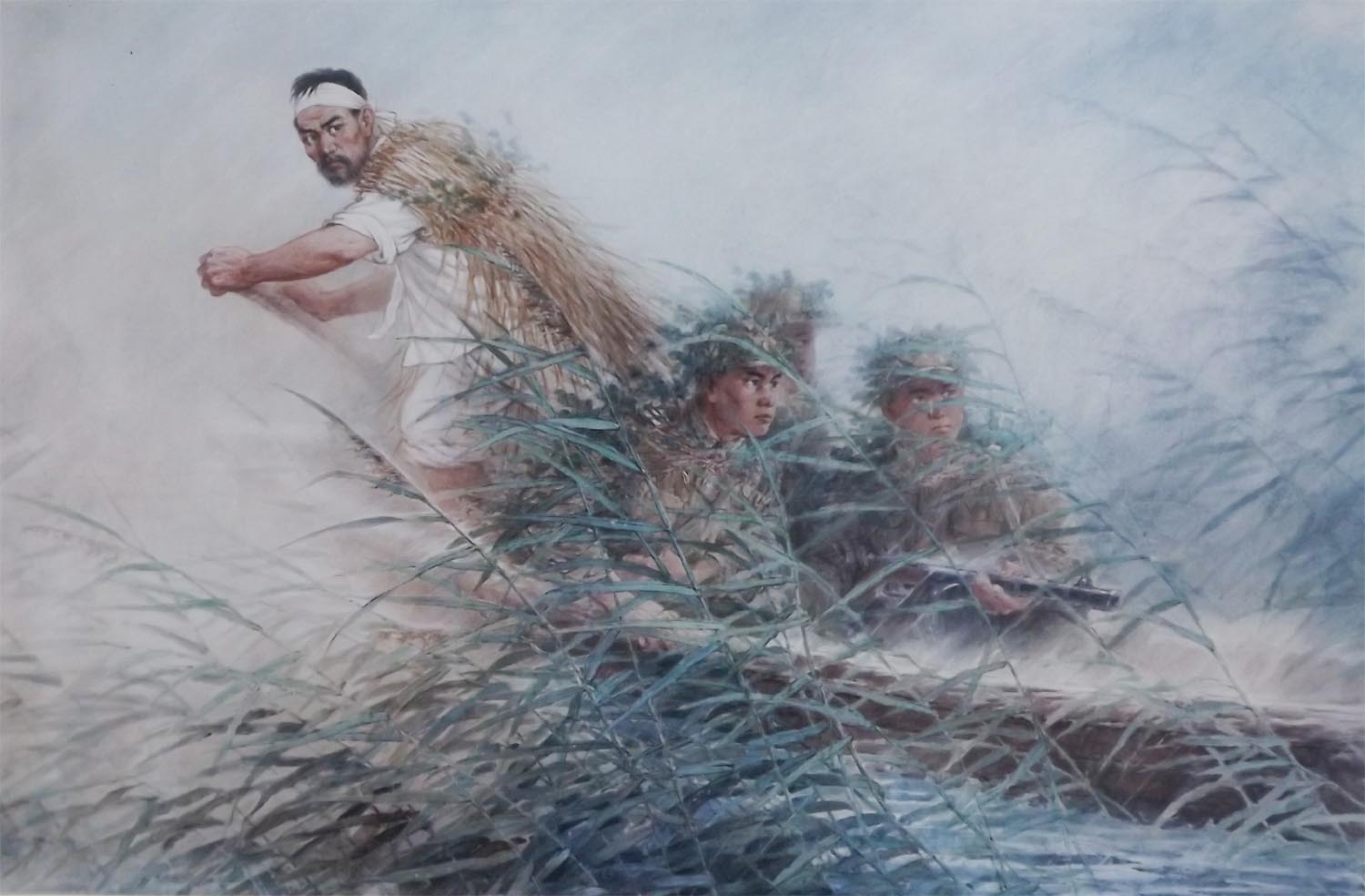 アーチストとしてのリさんの名が初めて知られたのは、チュチェ55(1966)年10月に開かれた第9回国家美術展でした。リさんは、この展覧会に祖国解放戦争の時、人民が人民軍軍人と一丸となって敵軍と勇敢に戦った感動的なシーンを描いた朝鮮画「ラクトン川のおじいさん」を出しました。
