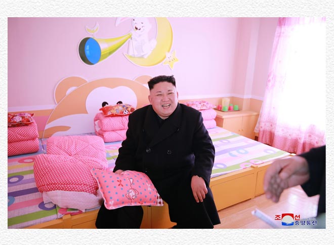 この日、金正恩委員長は、国中の育児院、愛育院、初等学院、中等学院の子供はみな私の息子、娘だ、一番の長者は子沢山と言うが、私は子の最も多い長者だと言った。そして、親のいない子供たちが頼りにするのは労働党しかない、悲しみや一点の陰りもなく、心強く陽気に育つよう、私に代わって、親代わりになって、面倒をよく見てくれること頼んだ。