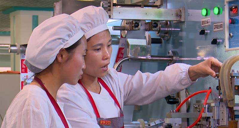 朝鮮労働党中央委員会第8期第10回総会の思想と精神に則り、今、工場の従業員は人民の健康増進に役立つ歯科衛生用品をより多く生産するため知恵と情熱を合わせています。