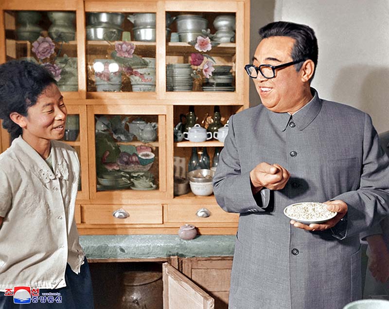 「学校と工場、都市と村など国のいずこにも金日成主席の足跡が印され、暖かい手が差し伸べられています。主席は生前、幹部たちに常々言いました。・・・人民のためには何でもしてあげるべきだ、革命家にとって人民の忠僕になることにまさる光栄はない・・・人民のためには何でもしてあげる社会、まさにこれが人民大衆があらゆるものの主人で、あらゆるものが人民に奉仕する人民大衆中心の朝鮮式社会主義の本質的特徴なのです」