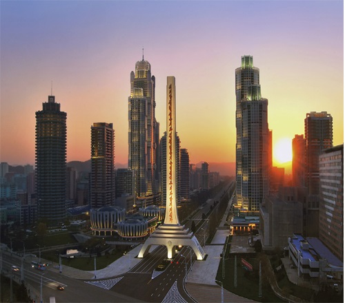 ピョンヤンに現代感覚にマッチした素晴らしいリョミョン通り*1があります。丸1つの都市に匹敵するこのリョミョン通りは、21世紀の省エネ型、グリーン環境型の街です。