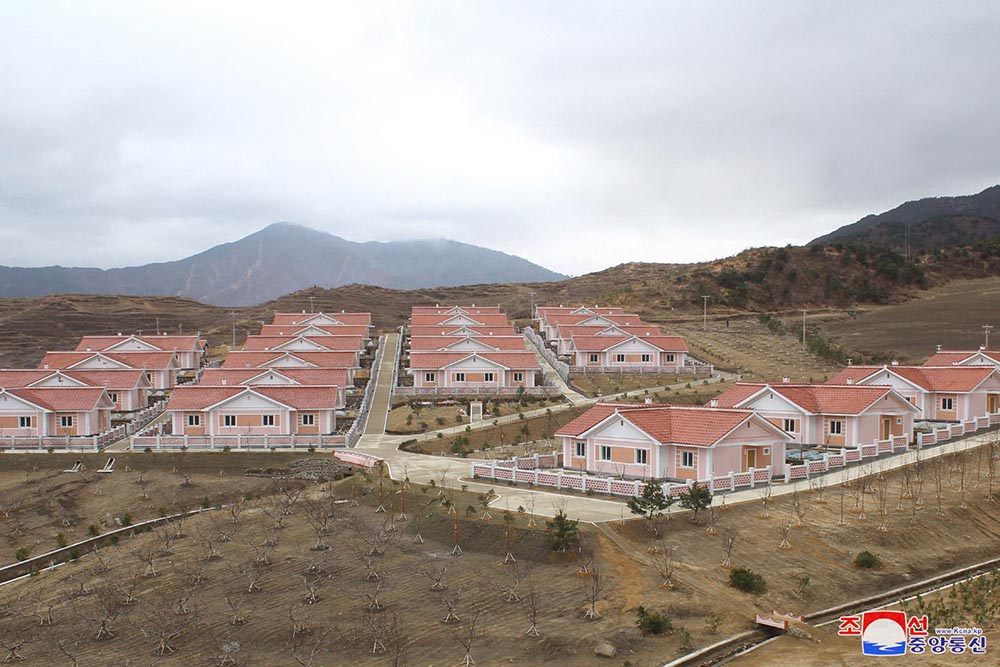 次の日、ハムギョン南道のシンポ市*3とホンウォン郡*4をはじめ東海岸地区の自然災害復旧現場を訪れた時も総書記は、人民軍軍人が雨後の筍のように新しい住宅を建て、奇跡そのものの成果を上げていることについて評価しました。そして、人民軍軍人が住宅の建設を期限内に、質的に、立派にやり遂げる成果を相次いで達成しているのは、人民の幸せと新たな文明の開拓者である人民軍ならではの奇跡だ、と言いました。