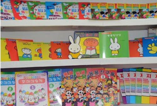 知能教育の絵本である「君も僕もハハハ」、「何でも知りたい」、「僕一人でできる」、「一週間物語」、「知恵の泉」、動物絵本の「動物の友だち」、美術教育の絵本である「豆美術家」、「簡単に作れるブロック」などは子供の中でとても人気です。