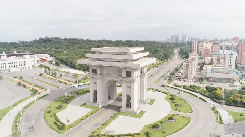 凱旋門はピョンヤンのモラン峰*1の麓にあります。朝鮮を解放して凱旋した偉大な金日成主席の不滅の業績を末永く伝えるため建てられました。主席は、チュチェ34(1945)年10月14日、ここモラン峰の麓で凱旋演説を行いました。