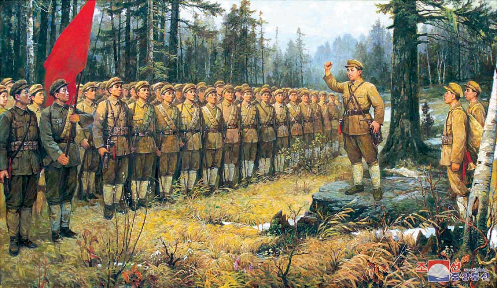 このように創建された初の革命的武力である朝鮮人民革命軍は金日成主席の卓越した指導の下に血戦を繰り広げて日帝を打ち破り、国の解放の歴史的偉業を成し遂げました。