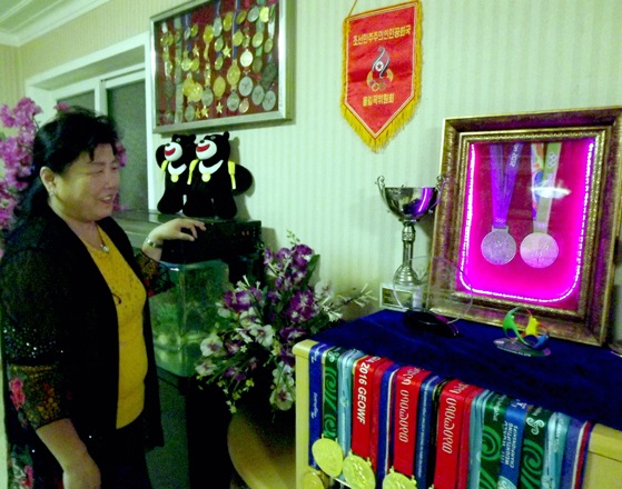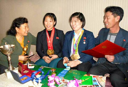 「2人の娘が金正恩元帥と共に撮った記念写真と国際競技でもらったメダル、名誉称号の証書で1つの部屋はいっぱいになっています。率直なことを言って、小さい時から2人の娘にウエートリフティングはさせたものの、今のようなことは考えも及びませんでした。本当にうれしいです。この喜びと幸せは社会主義のこの国を抜きにして考えられません。この国が娘たちの才能を見つけ出し、今のような世界的な選手に育てたわけです」